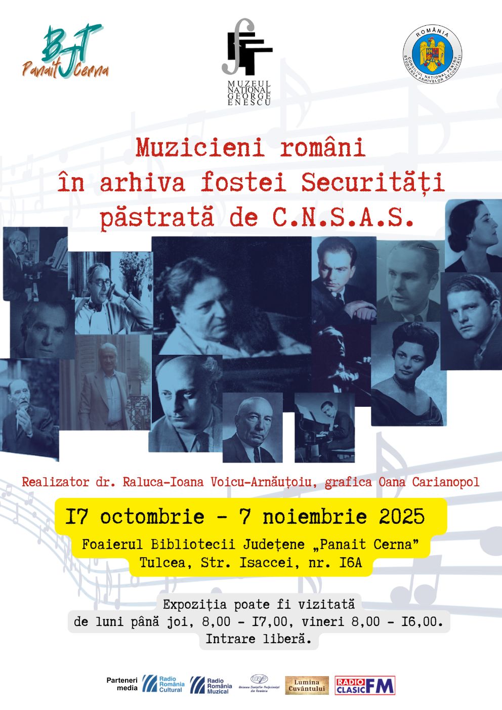 16Vineri, 17 octombrie, de la ora 12,00 foaierul bibliotecii va găzdui vernisajul expoziției „Muzicieni români în arhiva fostei Securități păstrată de C.N.S.A.S.” 🏛Expoziția „Muzicieni români în arhiva fostei Securități păstrată de C.N.S.A.S.” la Tulcea, 17 octombrie – 7 noiembrie 2025 Muzeul Național „George Enescu” și Biblioteca Județeană „Panait Cerna” Tulcea, cu sprijinul Consiliului Național pentru […]