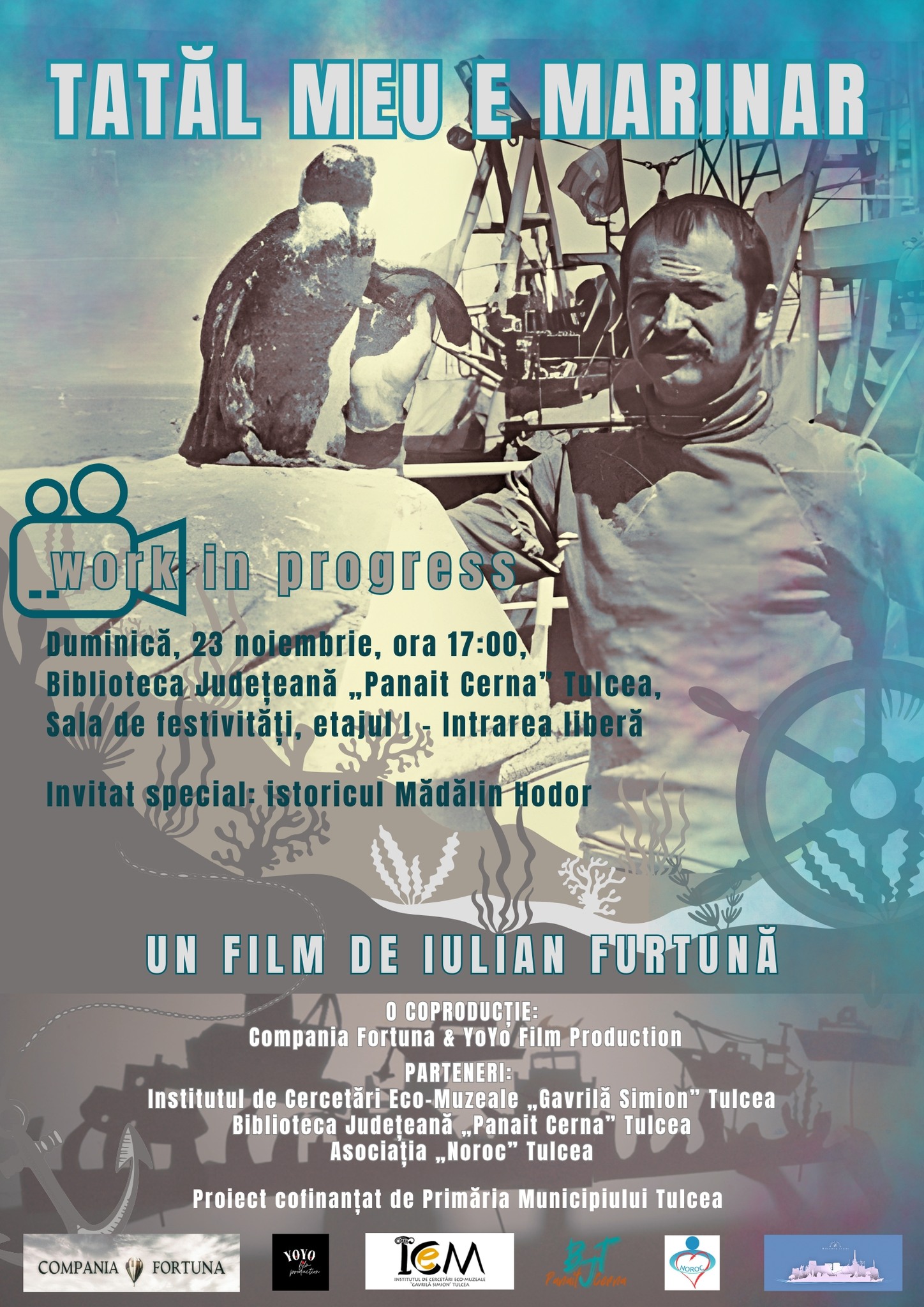 FILM: TATĂL MEU E MARINAR (work in progress) Un film de: IULIAN FURTUNĂ 📽 Duminică, 23 noiembrie, ora 17:00 📍 Biblioteca Județeană „Panait Cerna” Tulcea 🏛 Sala de festivități, etajul I ➡️ Intrarea liberă 👉Vă invităm la proiecția unor cadre din filmul „Tatăl meu e marinar”, o poveste emoționantă despre Tulcea-port, copilărie, bărbați ai mării, […]