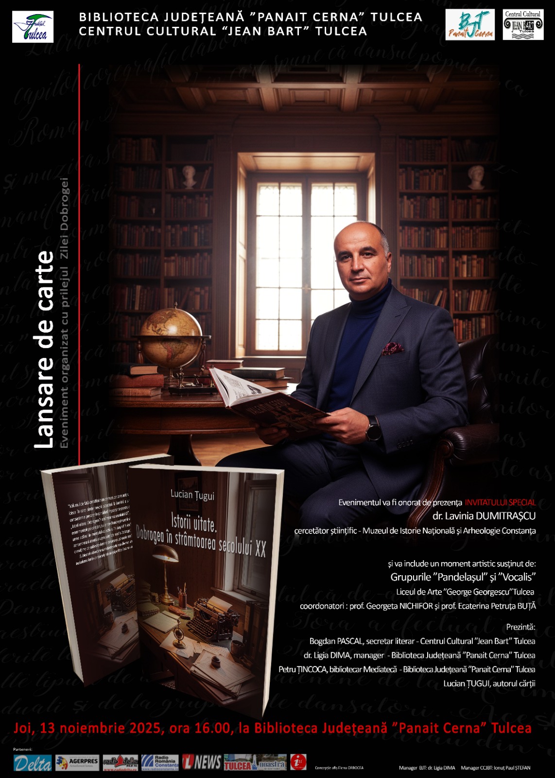 Joi, 13 noiembrie 2025, a avut loc la Sala de festivități a bibliotecii un eveniment special dedicat Zilei Dobrogei, prilejuit de lansarea volumului: 📖 „Istorii uitate. Dobrogea în strâmtoarea secolului XX” – autor Lucian Țugui. Evenimentul s-a bucurat de prezența invitatului special, dr. Lavinia Dumitrașcu, cercetător științific la Muzeul de Istorie Națională și Arheologie Constanța. […]