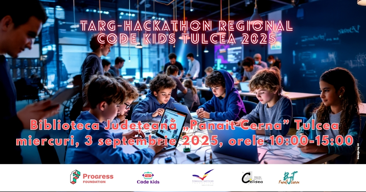 Avem deosebita plăcere să vă invităm la Concursul „Târg-Hackatron Regional, Code Kids Tulcea 2025”, pe 3 septembrie 2025, 10:00 – 15:00 în foaierul Bibliotecii Județene „Panait Cerna”, parter. La fel ca în fiecare an, copii și tineri talentați din cluburile de coderi își vor prezenta proiectele în fața juriului și a publicului, demonstrând creativitate, spirit […]