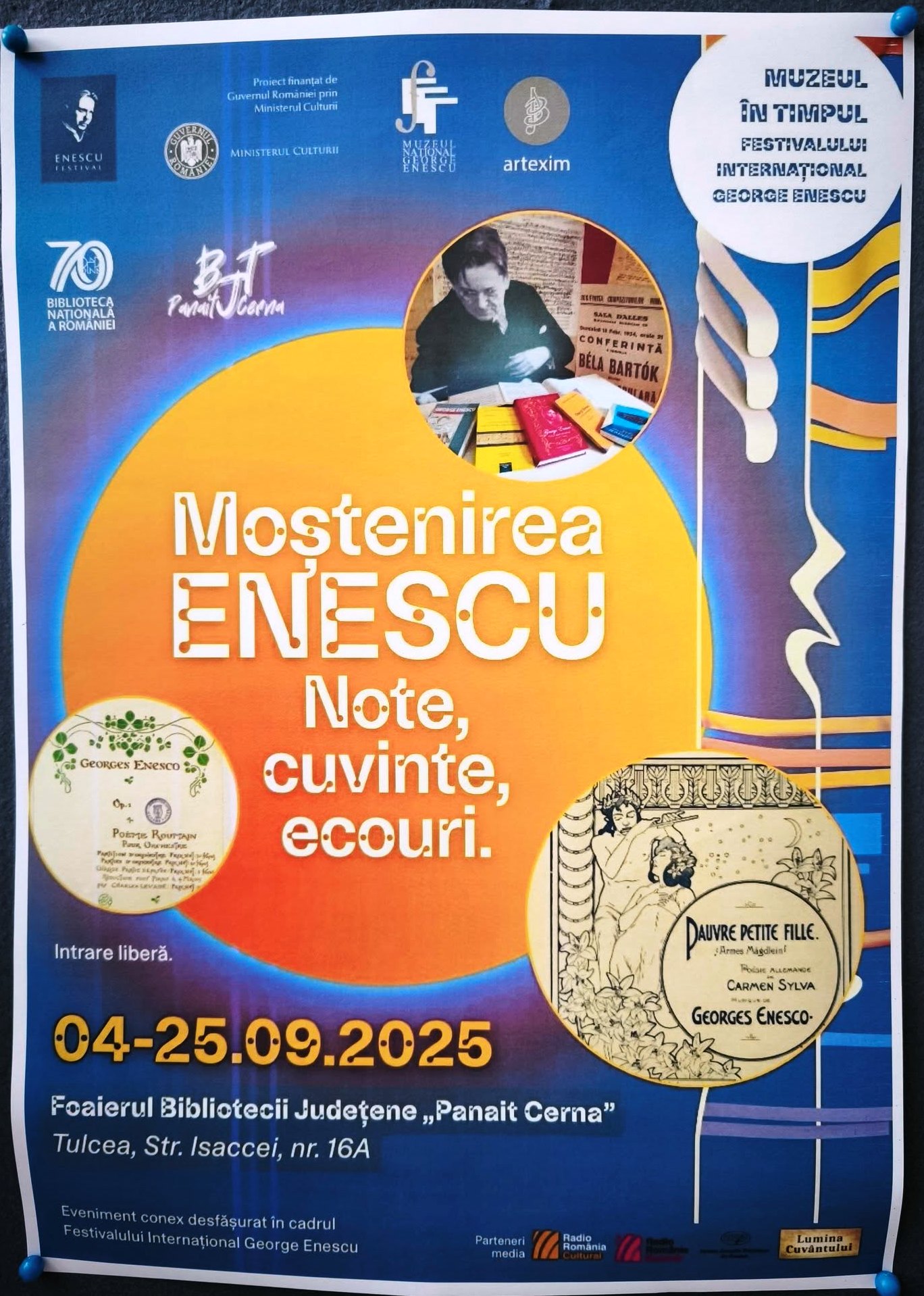 „Arta trebuie să mângâie, să unească; dacă ating acest țel sunt mulțumit în îndeplinirea misiunii ce mi-am luat-o.” George Enescu, 1923 Biblioteca Județeană „Panait Cerna” Tulcea în parteneriat cu Biblioteca Națională a României și Muzeul Național „George Enescu”, vă invită la expoziția de cărți și partituri „Moștenirea Enescu. Note, cuvinte, ecouri”. Expoziția rescrie, într-un mod […]
