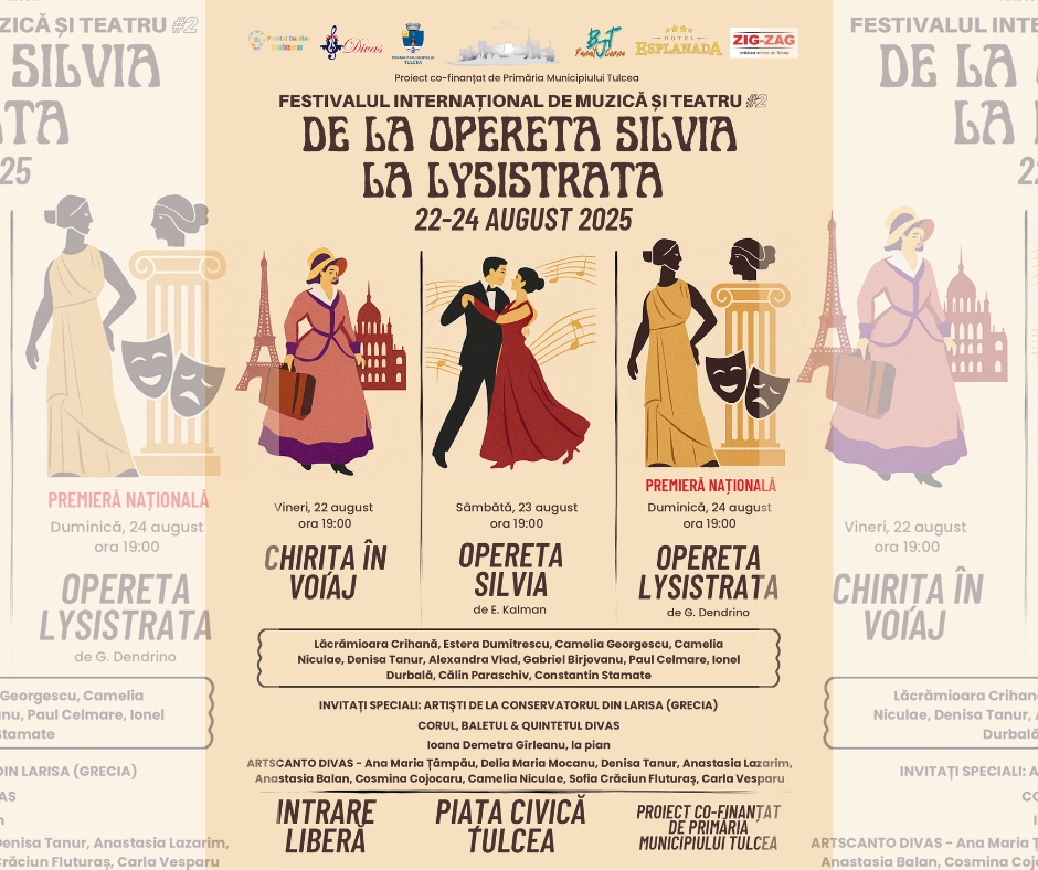 22-24 august 2025, Piața Civică Tulcea; Avem plăcerea de a anunța un eveniment cultural de excepție, unde biblioteca este partener, care se va desfășura în zilele de 22-24 august 2025, în Piața Civică a Municipiului Tulcea, începând cu ora 19:00. În cadrul conferinței de presă susținută la sediul bibliotecii, președintele Asociației Divas, mezzosoprana Lăcrămioara Crihană, […]