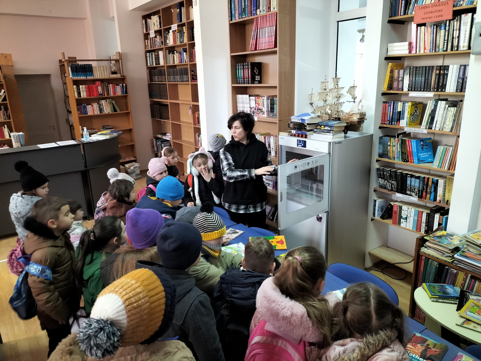 Cu bucurie i-am primit, la Mediatecă, pe elevii clasei a III-a A, îndrumați de prof. înv. primar Ana Dache și pe cei ai clasei a III-a C, alături de prof. înv. primar Alina Olaru, de la Școala Gimnazială „Elena Doamna” Tulcea, la „Discul cu povești”.